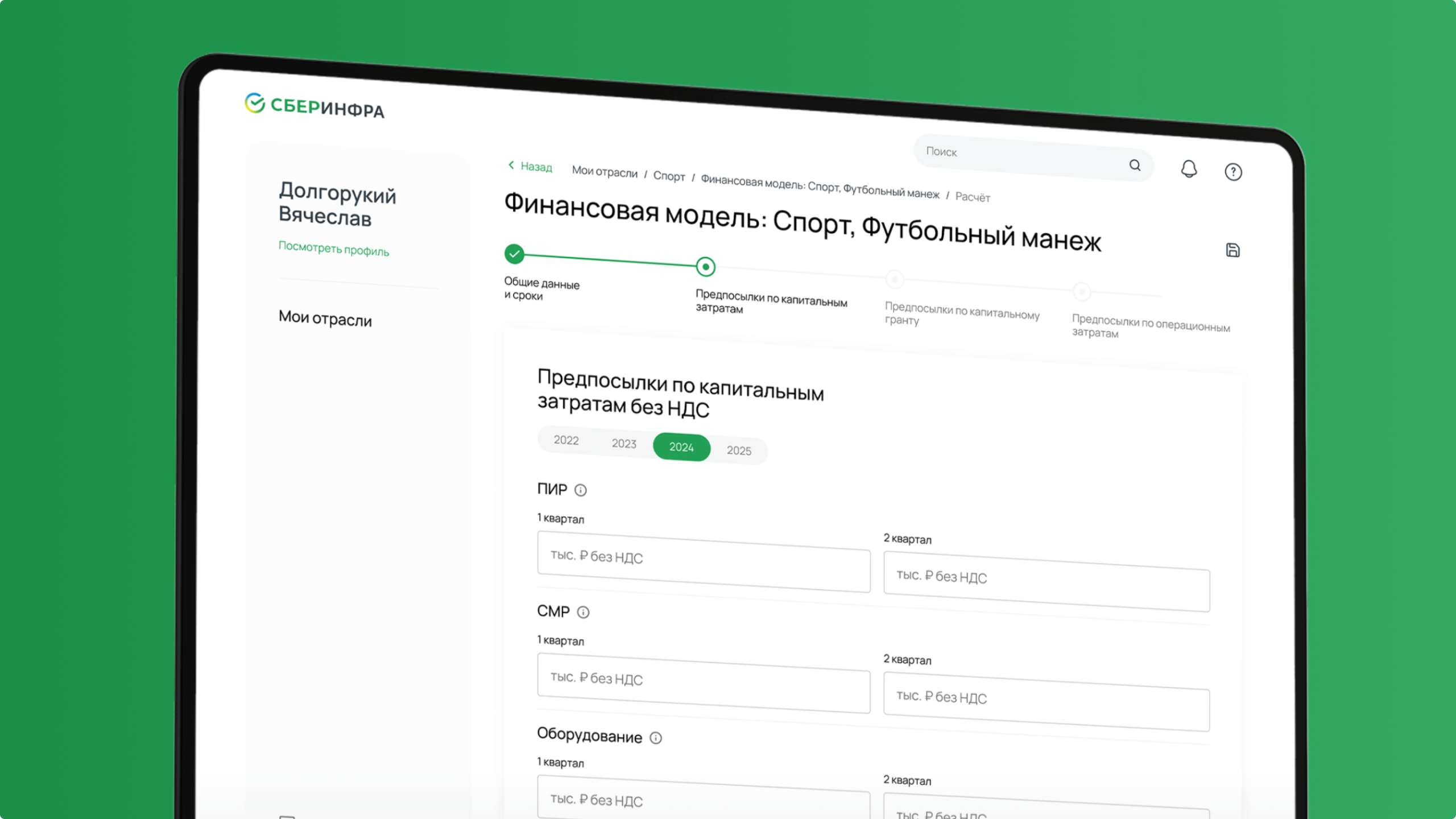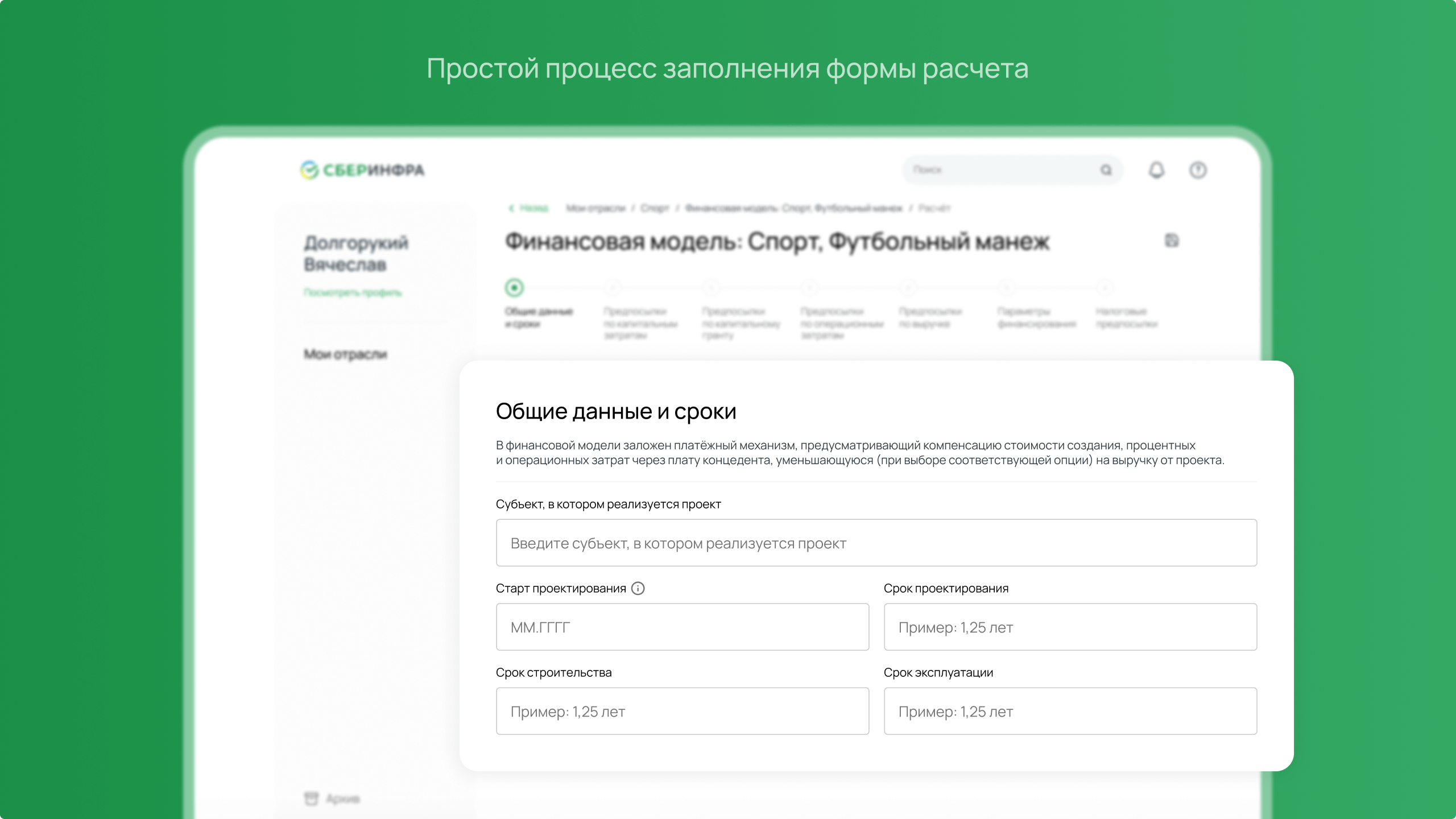 • предоставить возможность клиентам СберИнфра самостоятельно готовить финансовые модели для банка (вносить данные, получать результаты в веб-интерфейсе и файлах для скачивания);