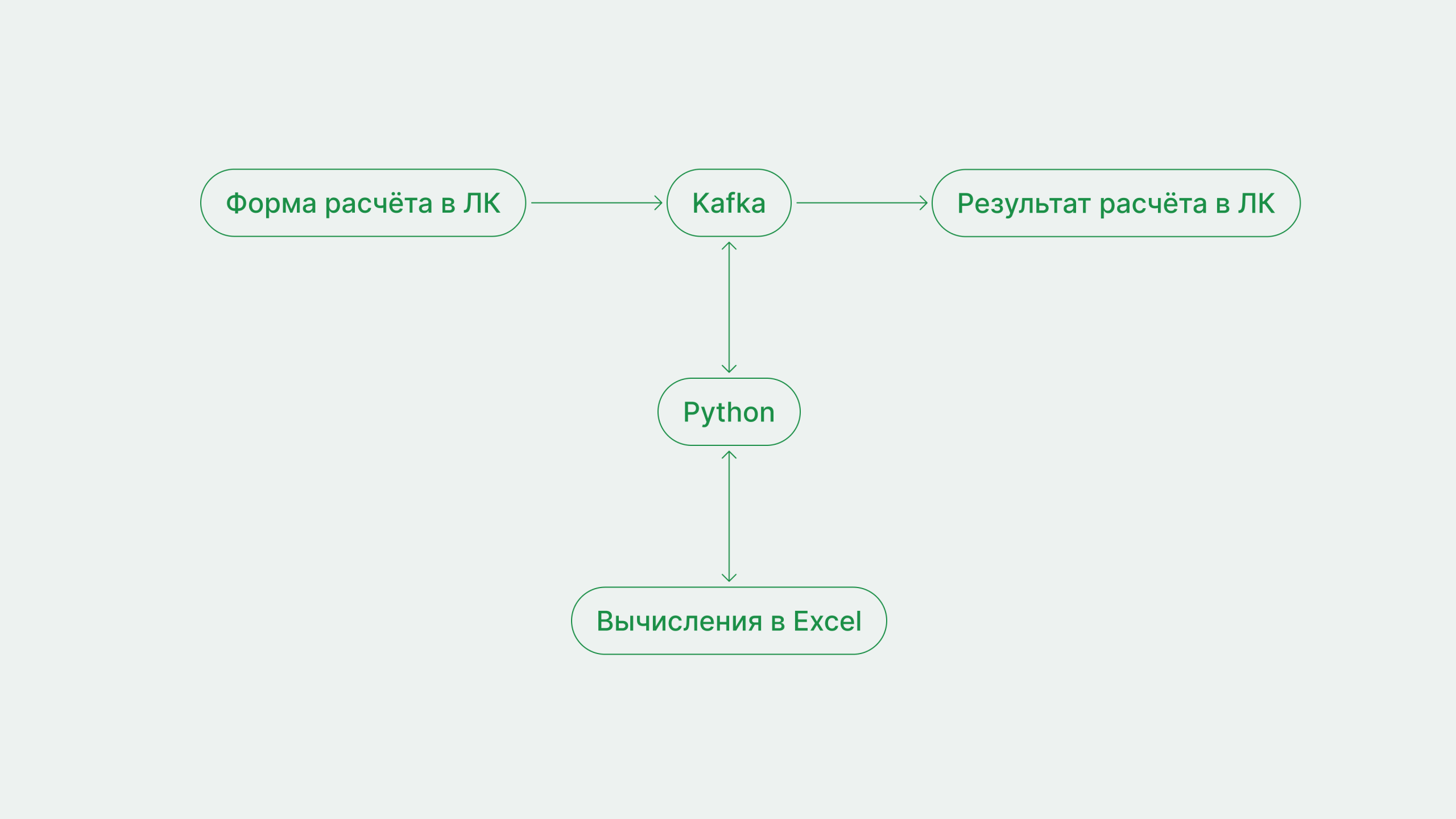 Привычной средой расчета моделей для заказчика является Excel, аналитики самостоятельно разрабатывают макросы и вносят изменения в алгоритмы. Поэтому сервисом расчета моделей фактически является Excel, а для запуска вычислений используется приложение на Python, которое получает данные из личного кабинета и использует их при запуске макросов в Excel.