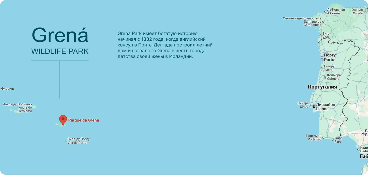 Grena Park имеет богатую историю начиная с 1832 года, когда английский консул в Понта-Делгада построил летний дом и назвал его Grená в честь города детства своей жены в Ирландии.